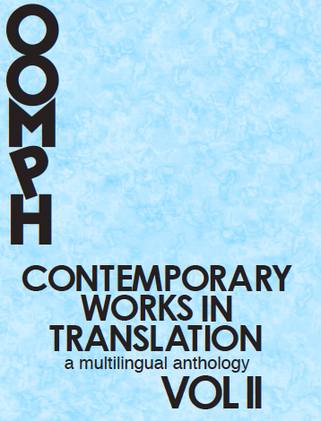 We are proud to present OOMPH! Contemporary Works (vol. 3): A Multilingual Anthology. For those of you who have been with us from the start, you will notice some departures from our previous journals as you flip through these pages: for the first time ever, we have decided to publish not only work in translation, but original work written in English as well; we have also decided to publish not only text, but visual art and hybrid work, too.